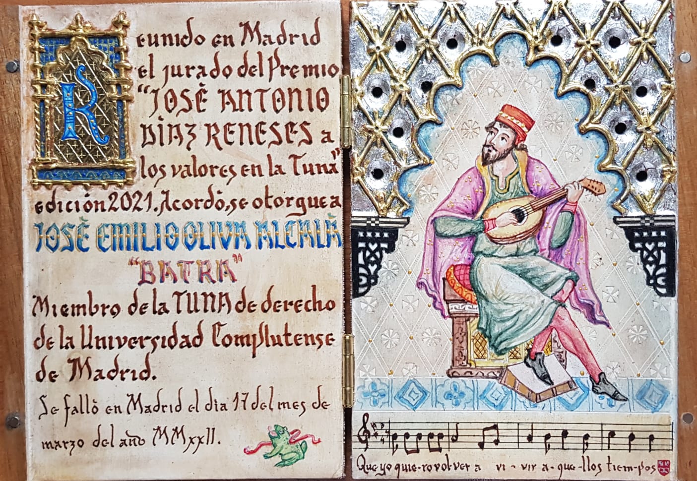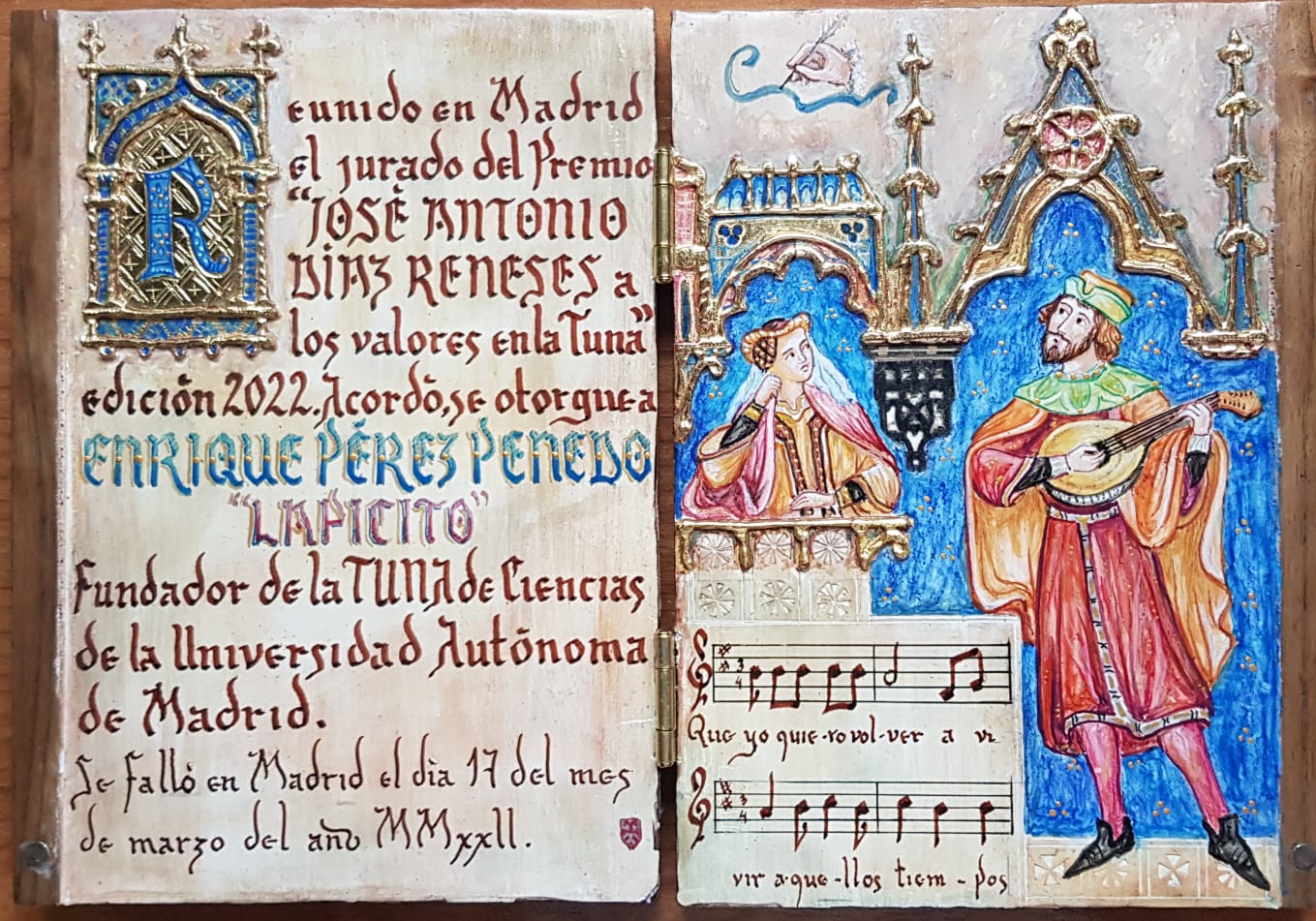 Este año se entrega a los premiados, adicionalmente y por primera vez, unos dípticos en madera que reflejan el premio concedido.